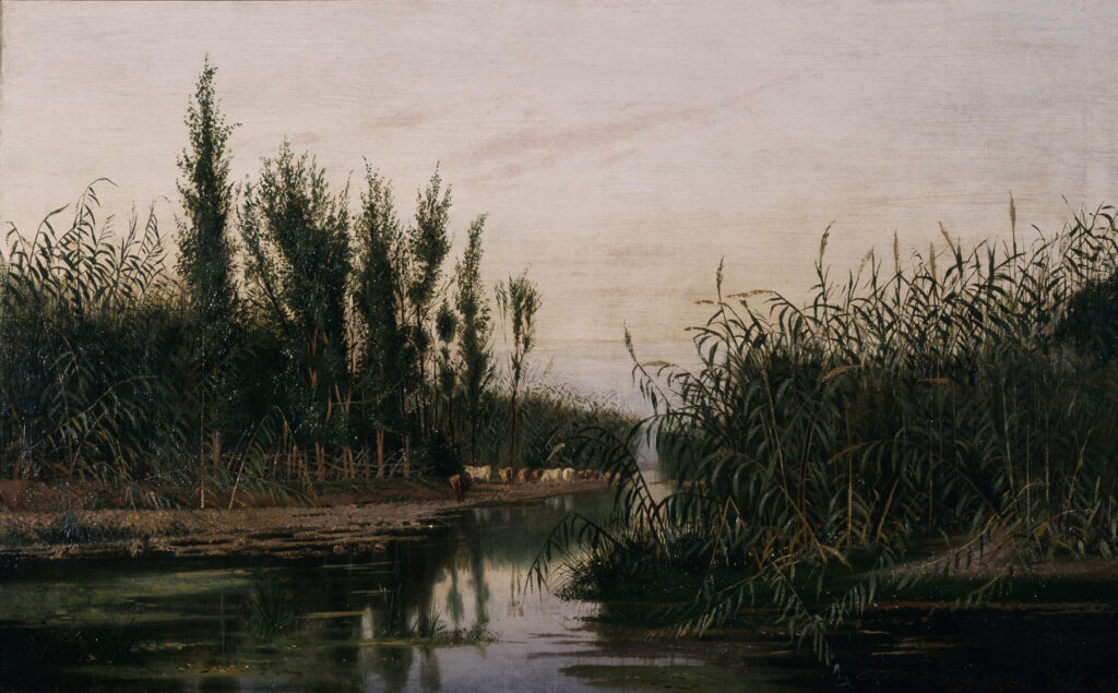 Ettore De Maria Bergler, Paesaggio con fiume, 1877, olio su tela