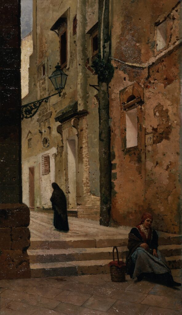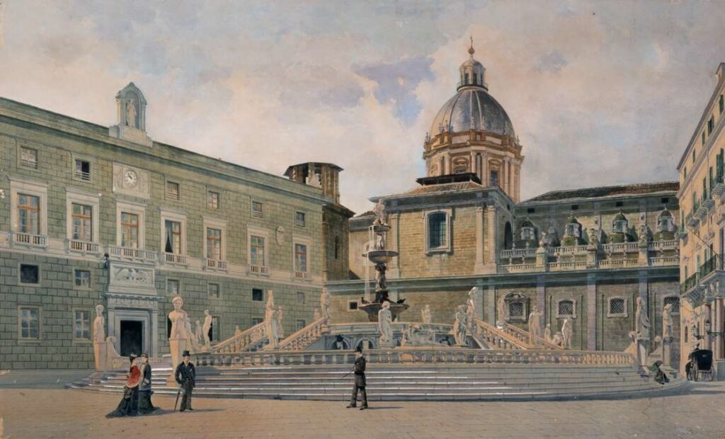 La collezione della GAM testimonia la percezione di un’epoca e documenta le tematiche oggetto di studio di cui gli artisti si fecero interpreti. Tra queste, un ruolo di rilievo lo ebbe l’immagine della città di Palermo, sulla scia del Grand Tour che – attraverso le rappresentazioni dei suoi viaggiatori – influenzò la tradizione locale di pittura di paesaggio. Le opere esaltano l’incantevole bellezza dell’ambiente naturale tra monti e mare della città. Inoltre, a partire dagli anni trenta dell’Ottocento, in concomitanza con la riscoperta negli studi dell’architettura medievale siciliana, l’interesse per queste tematiche si tradusse pittoricamente nella scelta di rappresentare una serie di scorci dei monumenti di Palermo di epoca arabo-normanna. Sia i vedutisti che i pittori di paesaggio raffigurarono Palermo da diversi punti di osservazione, entrati a pieno titolo nell’immaginario della città. Da sud, ovvero dalle falde di Monte Grifone, dall’area del convento francescano di Santa Maria di Gesù e dalla spiaggia di Romagnolo – Acqua dei Corsari; dai monti alle sue spalle, presso Monreale, Boccadifalco e Monte Billiemi; e, infine, ritrassero Palermo vista da Monte Pellegrino, l’elemento naturale più caratterizzante, un landmark che diviene esso stesso il simbolo della città. In questa serie, scopriamo come i pittori della GAM, tra cui – tra gli altri – Erulo Eroli, Francesco Lojacono, Michele Catti, hanno raccontato Palermo e il suo territorio, ma anche la sua storia, attraverso diverse modalità del linguaggio pittorico e all’interno di generi pittorici differenti.